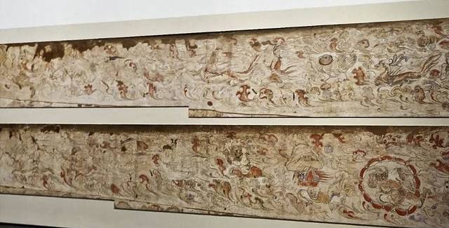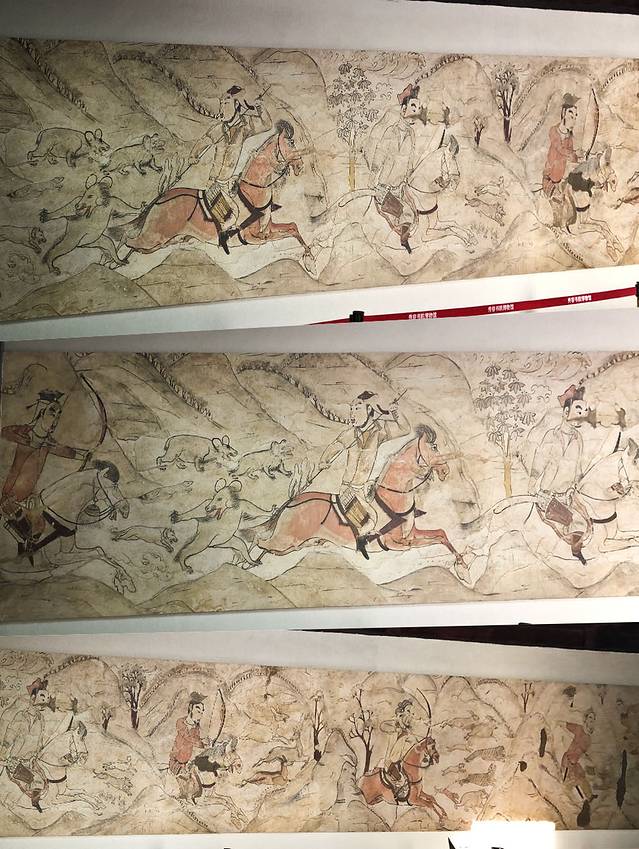 由于墓葬壁画面积很大,虽然也有被盗但仍抢救了下来许多,目前全国好多博物馆、美术馆都有展品,其实我头一天在山西博物馆也有见到,但好像只有一两幅,与徐显秀壁画在一些,后者是太原即将开放北齐壁画博物馆的墓葬壁画,也许下半年来太原就赶上开放了。便专心去欣赏徐显秀壁画了。