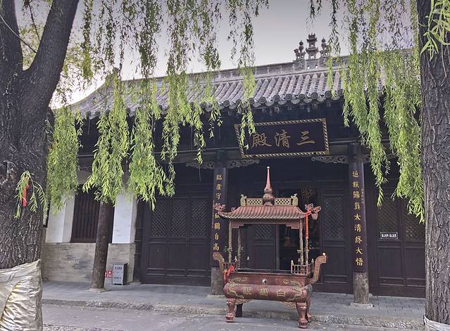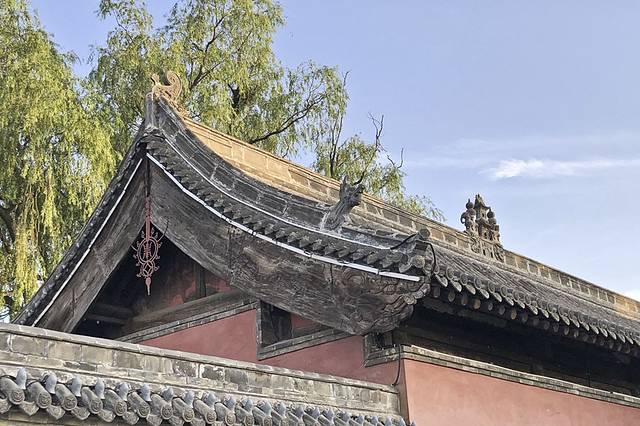 然后开始向上一点点参观秀容 书院的下院和中院,期间也不乏漂亮的古建筑。下院的白鹤观三清殿,瞧那檐下宽宽的档板,漂亮的花纹引起我的注意。