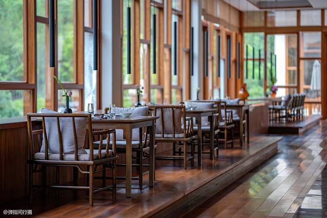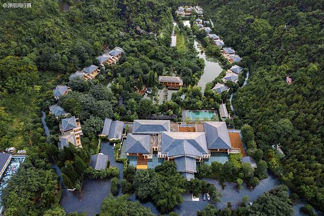 整个酒店耗资超过3亿,占地面积近20万平方米,而实际建筑面积仅约2万平方米,大多区域都保留了原始山林地貌,树木繁茂,山谷幽风,酒店本身就是一个庞大的天然氧吧。