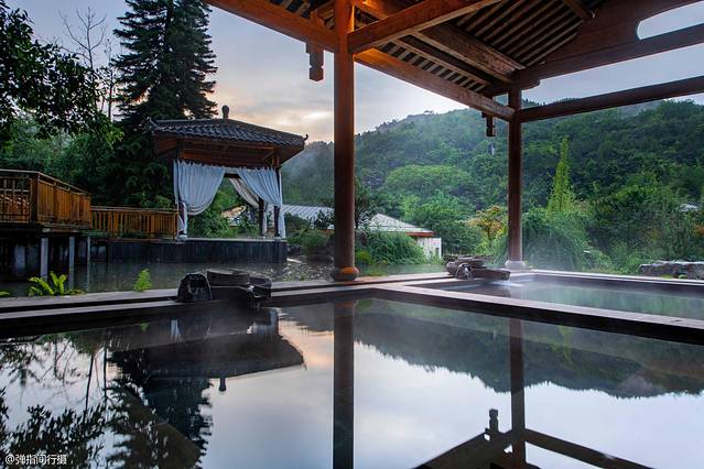 和房间私汤池一样,这里的泉水都是取自1800米的地下天然温泉,最高水温达53℃,据说与贵州茅台酒的度数53%vol一样,简直妙不可言。
