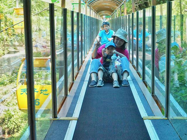 高空玻璃漂流我并不是第一次玩,但这么长而且有N个360度大回旋的玻璃漂流,还是第一次!坐在彩色的漂流艇上、在唯美浪漫的紫色透明玻璃滑道里乘风破浪,阵阵凉风从耳边呼啸而过、激起的朵朵水花溅到脸上,……身上的暑气扫光光,好畅快啊!