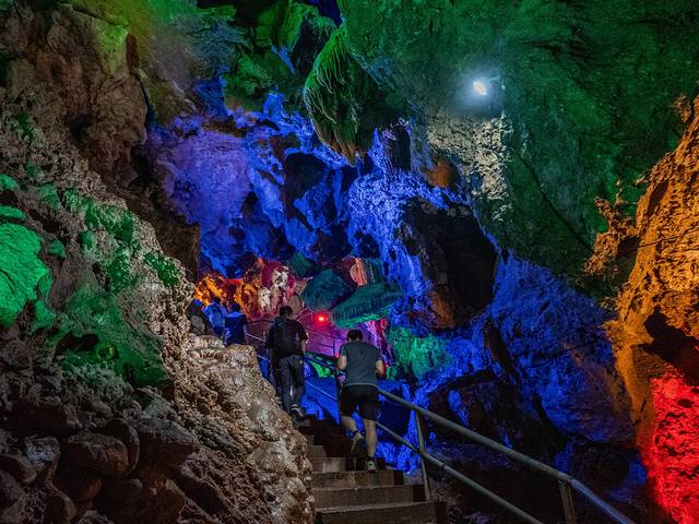 因为洞内最高落差有148多米,所以逛天子洞的运动量相当于爬了一座小山,但比一般的爬山可凉爽和有趣多了!形态各异的钟乳石五彩斑斓,发挥想象力的时候到了!