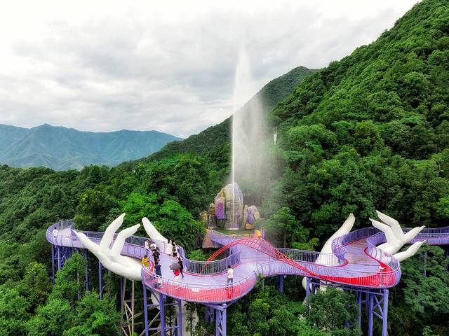 一对纤纤玉手捧起一条“丝带”,走在丝带之上体验被捧在手心的感觉,对了还可以玩一下“喊泉”,挑战一下自己的肺活量。