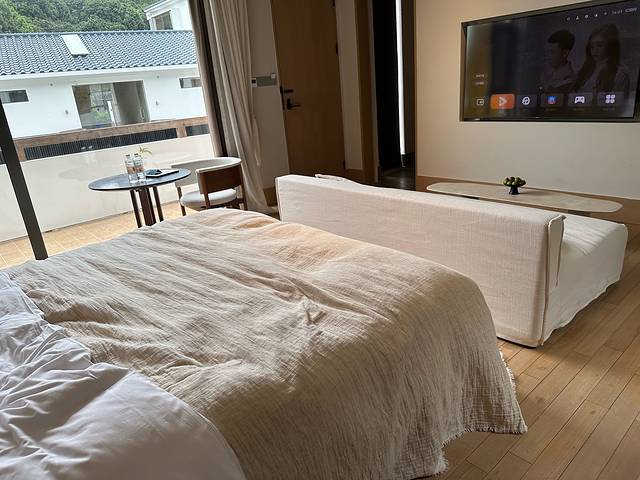 🌈🌈第2⃣️天在民宿吃过早餐,休闲待到12点退房后,去了附近茶餐厅吃午饭接着就出发去“大鹏古城”。南澳离大鹏古城距离开车大概半小时就到达,大鹏古城较场尾都在一个地方,我们也来过好几次,之前过来都住在较场尾的民宿,那里靠近较场的尾沙滩。但是这次我们选择住在大鹏古城里面。定的民宿“榈庭精品客栈”,从停车场过去非常近。就在古城(东门)旁边。客栈订的带有大露台的房间,房间装修有点陈旧不过整体干净整洁,最喜欢是大露台还有麻将桌。从古城步行过去较场尾的沙滩大概十几分钟,因为较场尾沙滩我们已经去过好几次,所以我们决定开车去相对有点距离的“桔钓沙”,从古城开车将近30分钟就到了。桔钓沙的沙子很细腻,沙滩的水质比起较场尾沙滩要清澈。而且沙滩很多人玩水上运动。玩完沙滩回到客栈后,晚餐选择在古城里小面馆吃了个小面,吃饱再休闲逛逛夜市的古城。