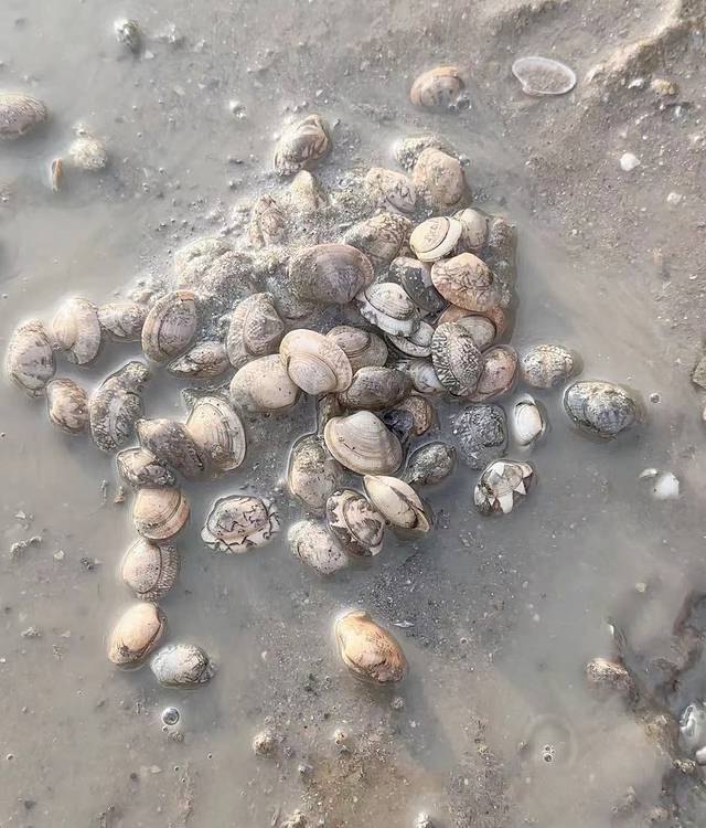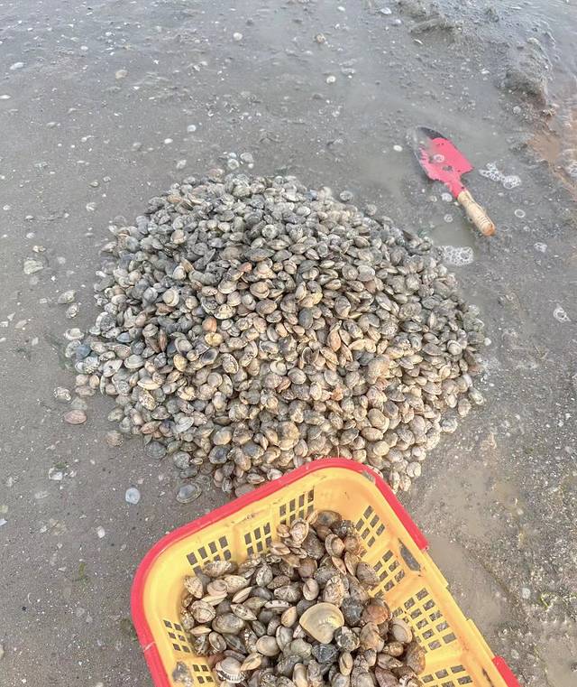 由于赶海体验会受潮汐时间的影响,早上集合的时间导游都会根据潮汐时间来安排,然后提前跟我们说~集合后就乘坐包车前往赶海场地,开始挖挖挖🪣