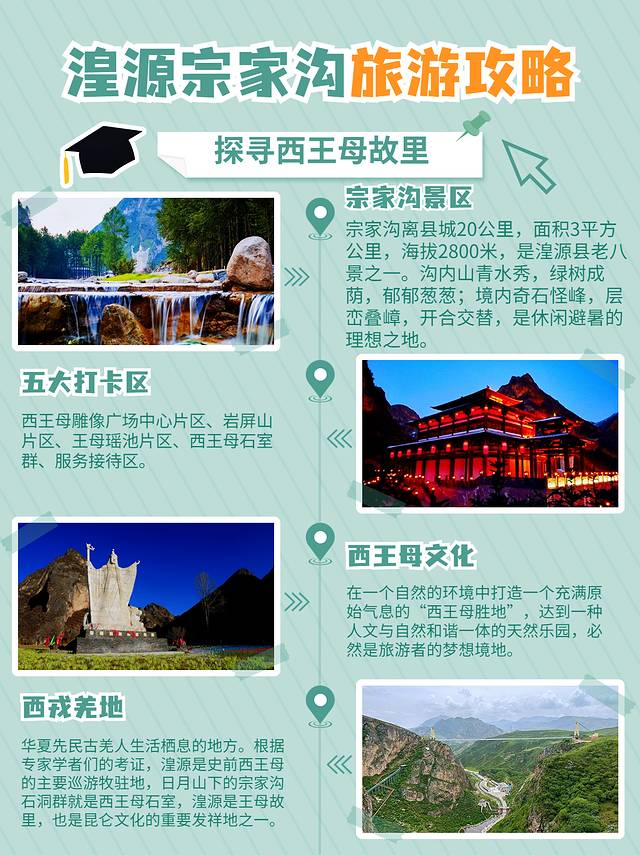 西王母雕像广场:西王母文化是宗家沟历史文化的亮点 💡,作为王母故里,这里没有太多的奢华与繁荣 💰,更多的是一种温馨与恬淡 😊。充满原始气息的“西王母胜地”,是一种人文与自然和谐一体的天然乐园 🌳,更是旅游者的梦想境地。