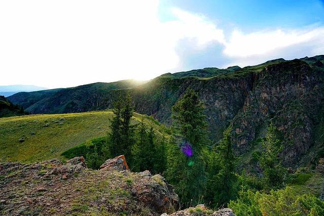 峡谷之中,茂密的针叶林郁郁葱葱如同青色的粉黛,装饰着这里的每一寸土地。雾气绕山顶,时而浓雾弥漫,时而薄纱飞舞,究竟是怎样的鬼斧神工,才能雕琢出如此精致且神秘的Bayankol峡谷。