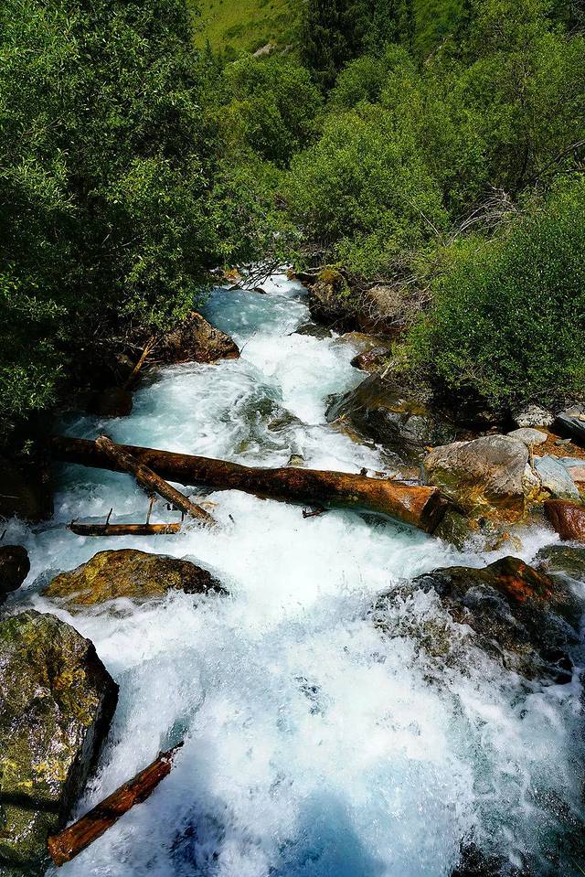 沿Temirlik河流继续探寻,远处,威武高俊的群山郁郁苍苍,重重叠叠,犹如一条长龙,一眼望不到头;高耸云霄的山峰峰层累累,各不相同,犹如一把把长剑,直入云霄。