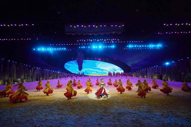 蒙古马演出绝对是来中国马都必看的节目,这也是大型实景剧大型室内情景马剧《蒙古马》演出焕新升级,剧情更加紧密情节更加细腻,进一步增强了艺术表现力和感染力,灯光再度补强使得现场效果更加的震撼,新增的马术技巧也是今年一大亮点,让观众在观演过程中有种强烈沉浸感。