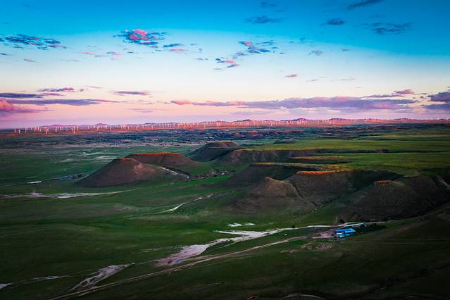 映入眼帘的一座座山顶皆平如锅底,在草原上连绵延伸着,锡林郭勒草原火山地质公园地处内蒙古自治区锡林郭勒盟境内,位于内蒙古高原上“世界四大最美草原”之一的锡林郭勒草原中部。