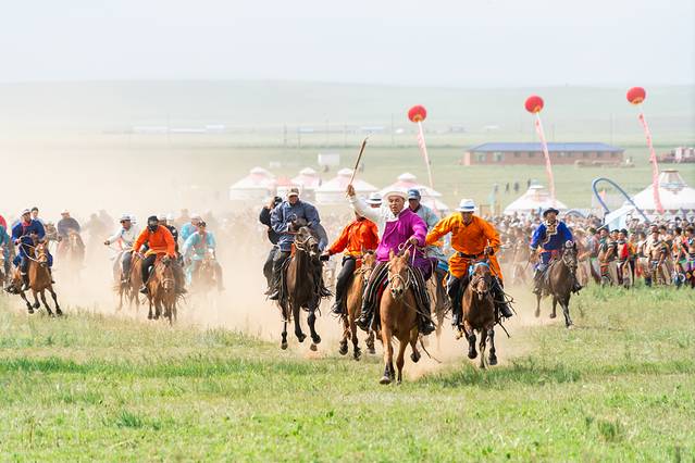 那达慕在蒙古族朋友的心目中,是一个可以媲美春节的大日子。节日期间,人们载歌载舞,盛装出席,并举行赛马、摔跤、射箭、拔河等赛事。随着时代的发展,那达慕这场草原上的盛会也渐渐地有了外延,汽车那达慕来助阵,助力这场夏日的狂欢,助力这场草原上的盛宴。