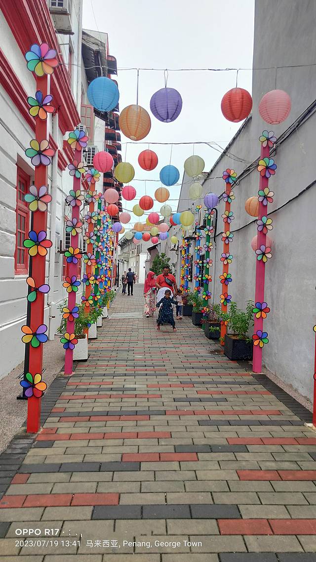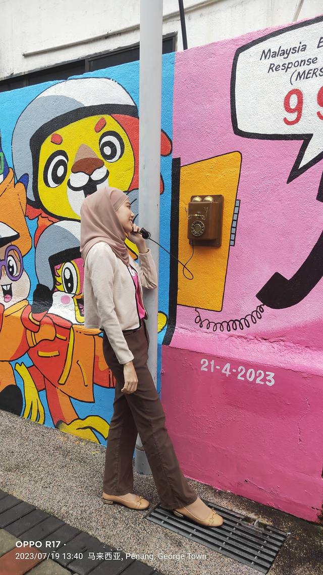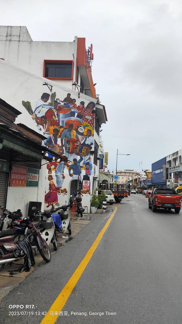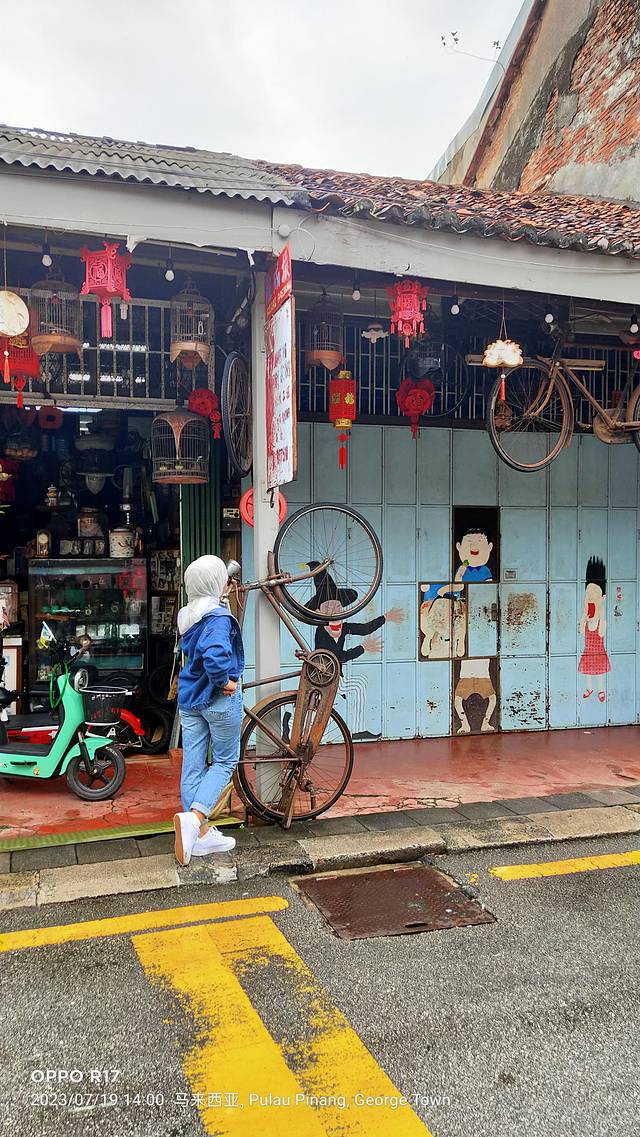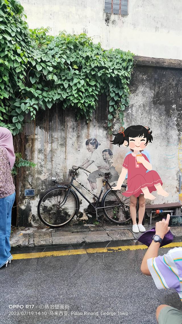 网上资料:在乔治城的街头,散落着许多壁画,是生于立陶宛的槟城艺术家 Ernest Zacharevic 和俄罗斯艺术家 Julia Volchkova 在乔治市的小路之间,展示了他们的艺术,并把它们定格在这里经典建筑的墙壁上。