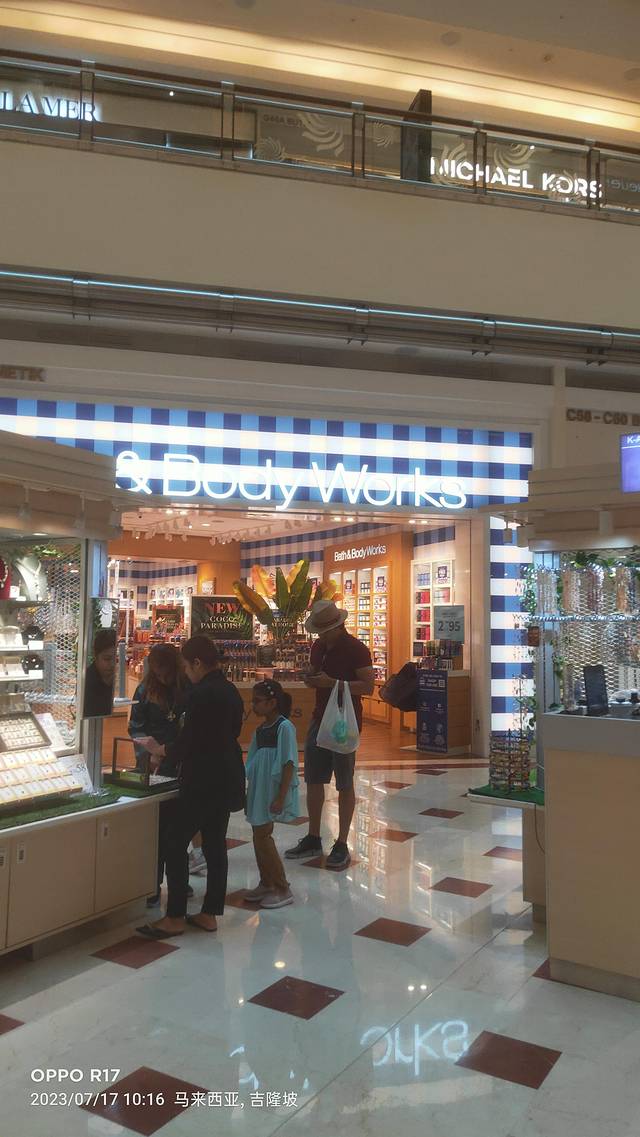 被商场的宽敞和明亮所吸引。商场拥有各种高档品牌的店铺,有吃的,穿的,用的;化妆品,香水数不胜数。商场中心还有一个美丽的音乐喷泉和许多不同的雕塑和装置艺术品。