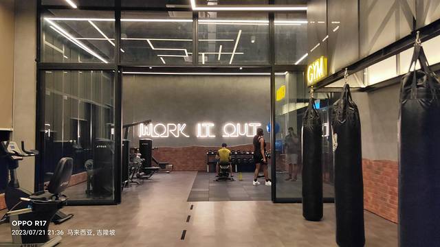 酒店的入住客人可以用门卡刷开健身房的门,随时进行健身。