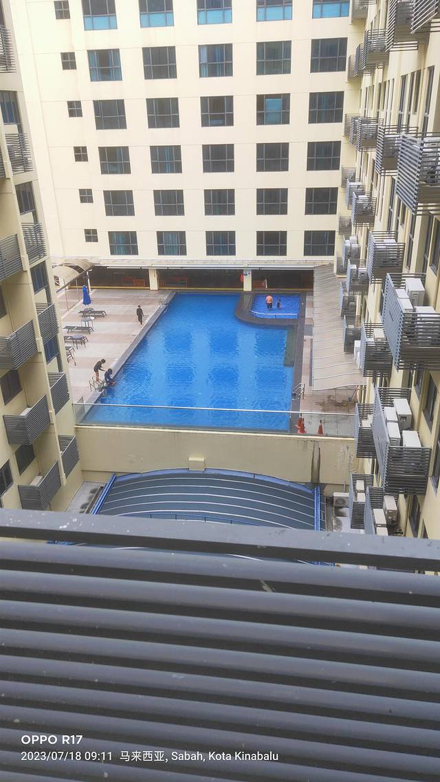 酒店楼下有一个游泳池