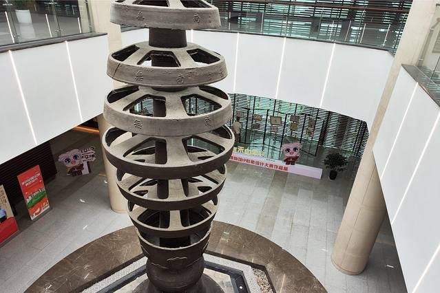 博物馆内设有中空大厅,足有三层楼高,厅中立有一件铁塔,一直顶到透明的天花板。这是真如塔的塔刹,本为安放在塔顶的标志物。 嘉兴 历史上曾有“七塔八寺”,均已消失在历史的风雨之中,这件难得的遗物被保存在此处,堪称镇馆之宝。真如塔位于 嘉兴 火车站北面的人民公园内,到 嘉兴 后一下火车就寻到这处遗址,但只看到一片石基,当时还叹息的半天。