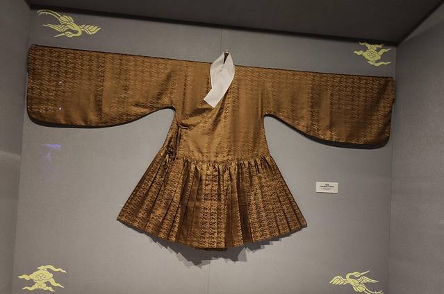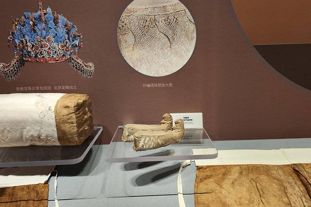 最开始看到“梅里云裳”这个主题时,还以为是服装展,看过之后才发现,还真的是服装展,只不过是明代的服装展,而且是个奢侈品牌服装展,品牌的名字叫梅里李氏。以前常听说古代的有钱人穿着绫罗绸缎,在这里则搞清了到底什么是绫罗绸缎。