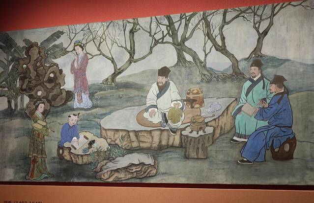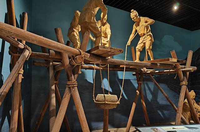博物馆门口的那尊雕塑,则在介绍 嘉兴 工艺品展示中找到了答案。这原本是一件银制酒器,名为槎杯。所谓槎就是分岔的树枝,在神话传说中则是往来天上的飞船,雕塑中的老人也不是普通人,而是西汉时出使西域的张骞,相传他坐着木槎探寻黄河之源时,曾偶遇牛郎织女。