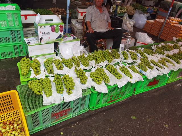 早上出门去 金瑞菜市场 逛菜市场,阳光玫瑰15每公斤 卤鸡米线7元一份 蓝莓,20一斤,一定要货比三家,还可以看看没见过的蔬菜,都很新鲜,喜欢卤鸡的朋友,还可以打包一只带回,一般是68一公斤,50元一只