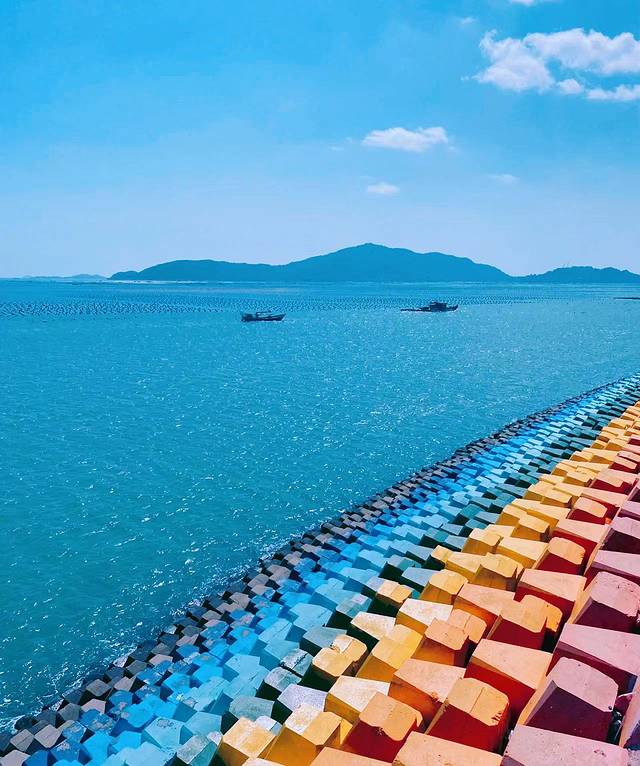 🌟【渔夫岛】一大早在指定的地点集合后乘坐包车来到渔夫岛景区,沿路的🖌️涂鸦🎨墙、🌈彩虹色的堤坝,不规则的集装箱造型,来往的人不多,是一个非常小众的拍照📷打卡点。海边的墙上写着“假如幸福有颜色,那一定是彩虹色🌈”,然后一转头就是彩虹堤坝简直不要太浪漫~在这里走上一圈心情都会不由自主的好起来