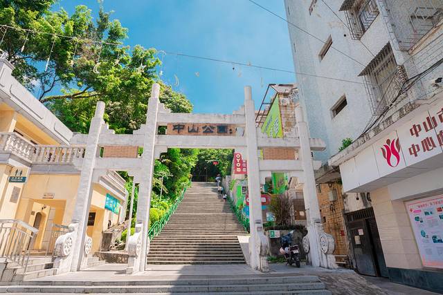 似乎很多城市都有个名为中山公园的公园,既然来了中山,那当地的中山公园定是不容错过。中山公园其实是平日里本地人登高散步的地方,顶部有观景台,可以眺望城市景观,不过很可惜的是我没找到那个口子,但庆幸的是我没错过阜峰文塔。