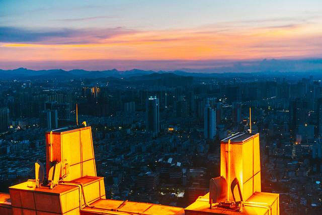 乘坐电梯到希尔顿的57楼,会看到一个日料店,直接走向电梯会有小姐姐帮你按上去的楼层。在60楼顶楼外会有保安看守,但其实只要出示个会员,或者现场注册个会员就可以直接进入了。彼时的顶楼栏杆周围已经布满了不少的人,在人群中找了个口子,去拍摄这座城市。原来,我狂走了一整天的城市是这个样子。