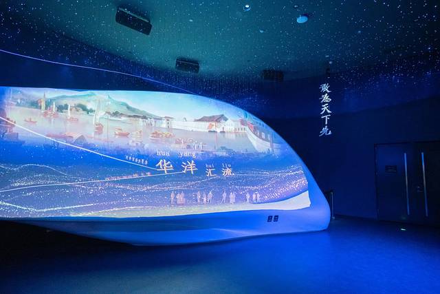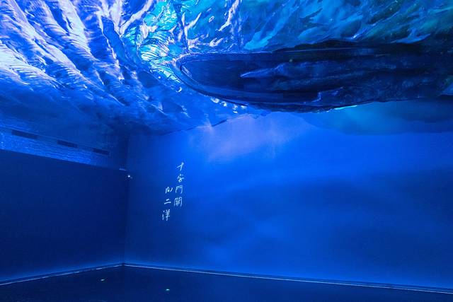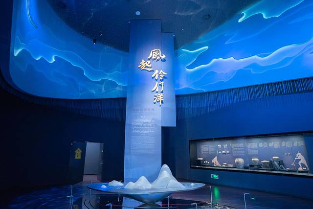 在众多展馆中,令我印象最深的还是中山历史陈列馆。里面有个展厅,一艘巨大的船嵌在天花板的角落上,搭配着蓝色的灯光,让我置身于海底世界之中,引领我去寻找中山海底的秘密。