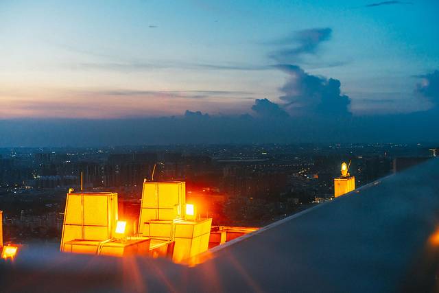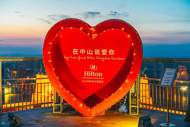 闲逛一天后其实已经是疲惫不堪,其实只想坐下休息。当然,途中累了就到街边去照找写糖水和凉茶喝,在广东这些东西不容易踩雷。等到傍晚,就可以到在利和希尔顿的顶楼看日落。这里可以俯瞰整个中山市的全景!无需担心因为没有入住而不能进入,这个顶楼大露台是所有人都可以免费登上的。