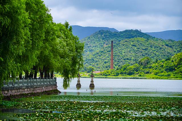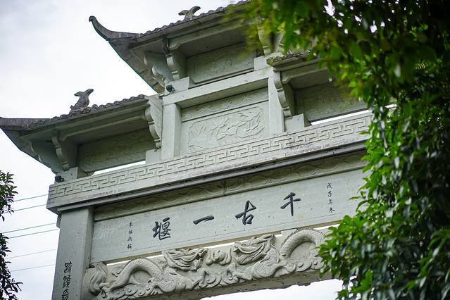 1.鸣鹤古镇牌楼:进入鸣鹤古镇的入口,可以欣赏到波光粼粼的白洋湖和金光灿灿的“金仙寺”。