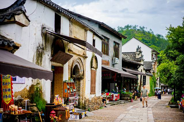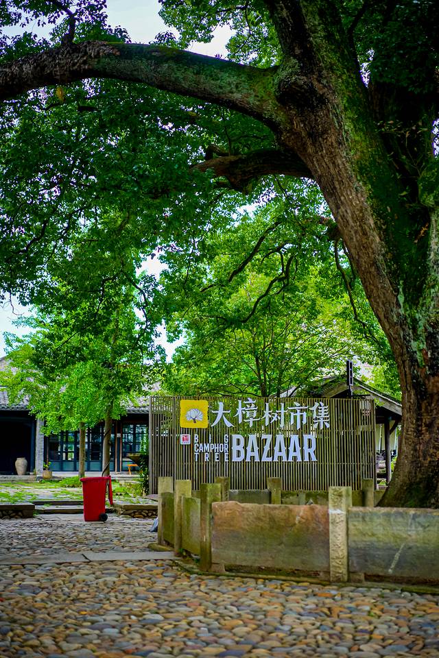 画乡的香樟树下非常好乘凉,也是一些集市开展的地方,往下就到溪边,逛逛还是非常惬意的。