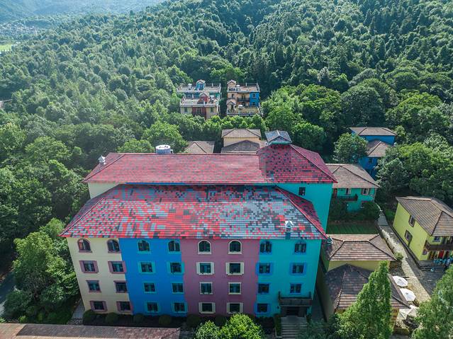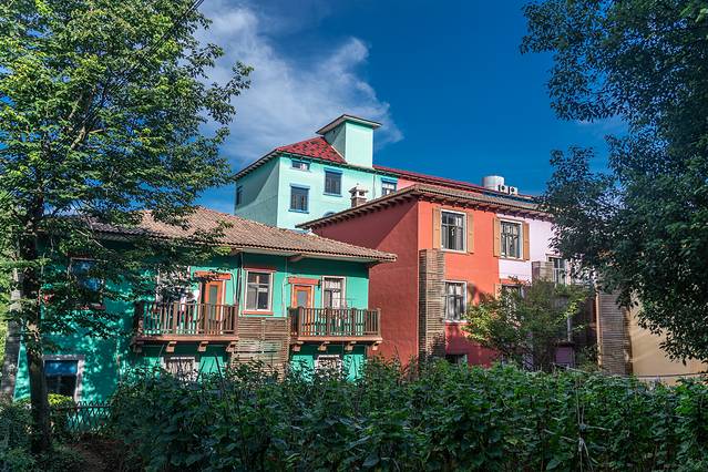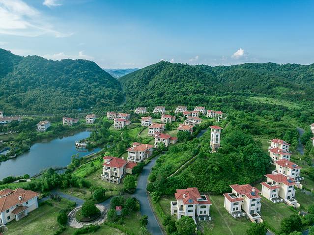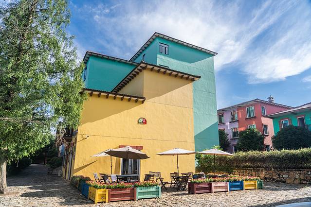 整个彩色村的别墅都是隐藏在山野葱绿之间,环境清幽惬意,漫步周边也是件非常享受的事情。