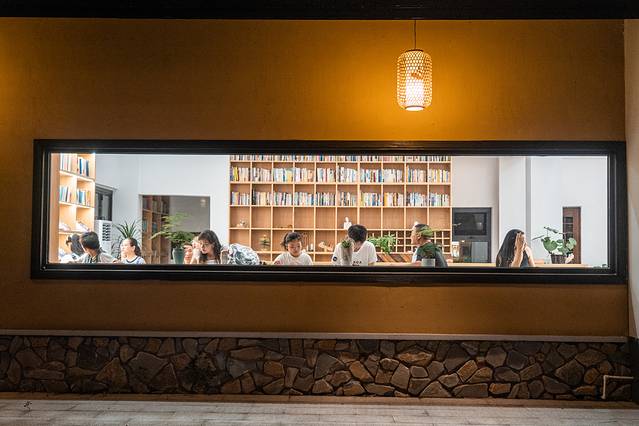 极具设计感的宽心书屋,除此之外,还有三千艺术馆、汉服体验馆、时尚清吧、围炉茶舍、忆长安美食城、青山糖水铺、等风咖啡屋等等。