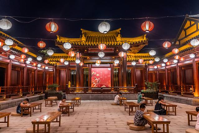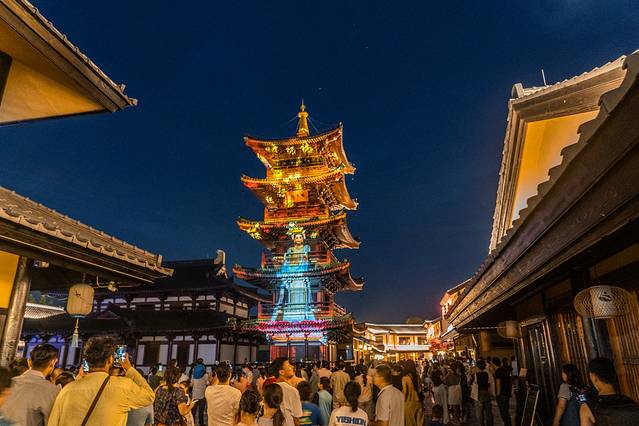 想深刻体验宽心小镇的禅意美学,夜游是必不可错过的。夜幕下的宽心小镇将国风美学演绎的淋漓尽致。