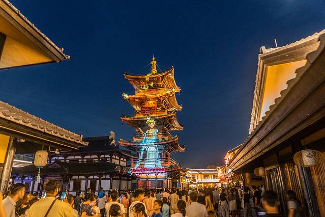 夜游宽心小镇,感受禅隐世界的惟秒,沉浸梦幻且五彩缤纷的国风美学。