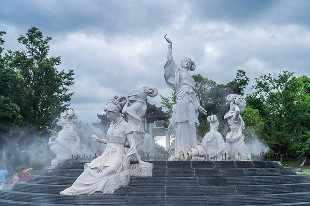七月的仙女湖,荷花飘香,七夕老街的古色古香与接天连叶无穷碧相映成趣,很多穿着汉服的妙龄穿行其中,加上水气升腾,瞬间有种穿越来到仙境的感觉。