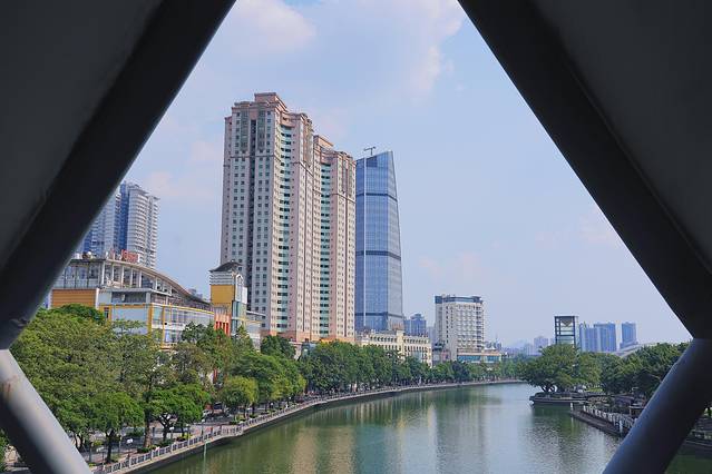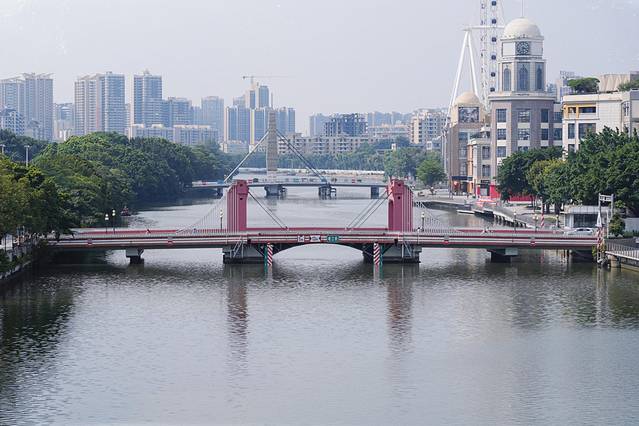 横亘于岐江之上的岐江桥,算是中山的地标性建筑,江岸两侧有欧式的建筑、摩天轮,还有当年孙中山先生曾到访的天字码头。走过岐江桥,就到了江对面,老城正在等着我们。