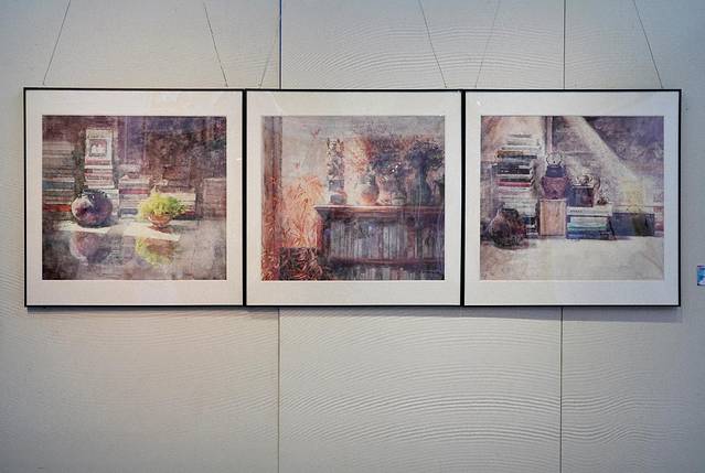 展馆不大,两层的洋楼展示着诸多当代美术作品。