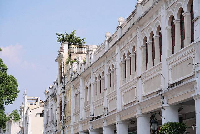 这里如今已然成为一条经过统一规划的步行街,建筑均以2-3层为主,以“南洋骑楼”风格为主,即将欧式殖民地风格建筑与传统的岭南骑楼建筑相混和,形成了中西合璧的独特建筑特色。