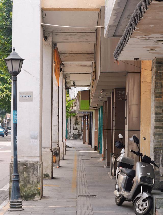 孙文西路,一定是中山最有氛围感的老街。街道两边是骑楼建筑,仿佛一下子就把时光拉回到了商贩云集的民国时代。