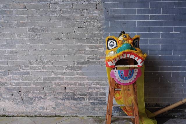 书院各处都布置了许多相当有地方特色的小物件:书画作品、中式风格的艺术品,还有舞狮等非遗手工制品。