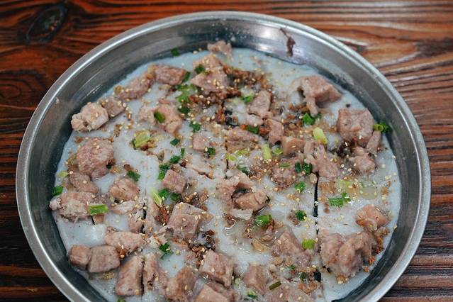 居民区内的一家濑粉老店,当一碗粉端上来的时候,我被食材的分量着实惊到了。大块的肉、正片的猪腰结结实实地盖在了最上面,让我费了好一会儿才找到埋在最下面的粉。吃粉先喝汤,一口鲜甜着实让人无比惊艳,汤底加入了黄姜,因而被赋予了一种特殊的辛香味。濑粉爽滑,在汤汁的包裹下味道更胜一筹。猪腰的处理及其干净,又得益于食材实在新鲜,完全吃不出任何内脏的异味。