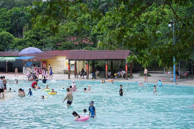 当我驾车抵达,正值午后,偌大的停车场却已经停满了车。许多人一家老小,带着游泳装备,正进进出出,泳池内人声鼎沸,让原本寂静的山间顿时热闹非凡。