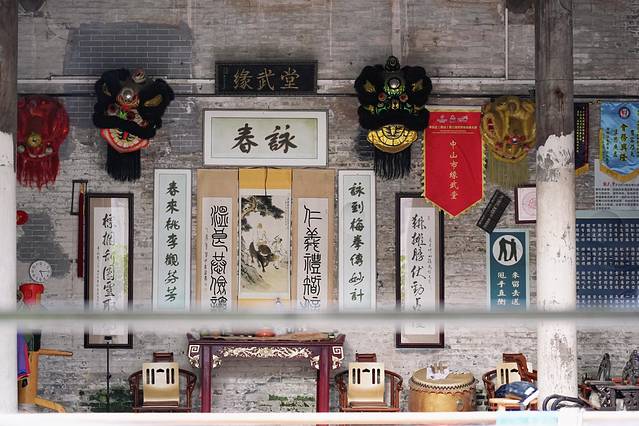 偶然路过,发现了这座老房子,一查才发现,原来是在中山很有名的一家茶室,于是另外找了时间专程来看看。这栋大气的老宅,是明代中期建造的杨氏大宗祠,后来改成石岐书院,直到被现在的老板又改成了茶舍,有了一个很文艺的名字“一棉茶社”。