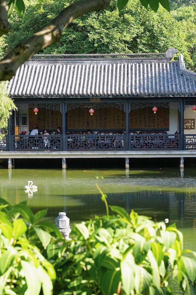 这座园林所推崇的文化内核是“孝道”,园内五大建筑之首便是舜帝殿。历史上,舜帝开创了中华以孝齐家、以德治国之文明先河。以园主父亲的名字命名善源桥,全长68米,是岭南地区最大的一座风雨廊桥。远远望去,这座廊桥相当的精美壮丽,与周围的园林景致融为一体,有种独到的美感。