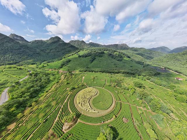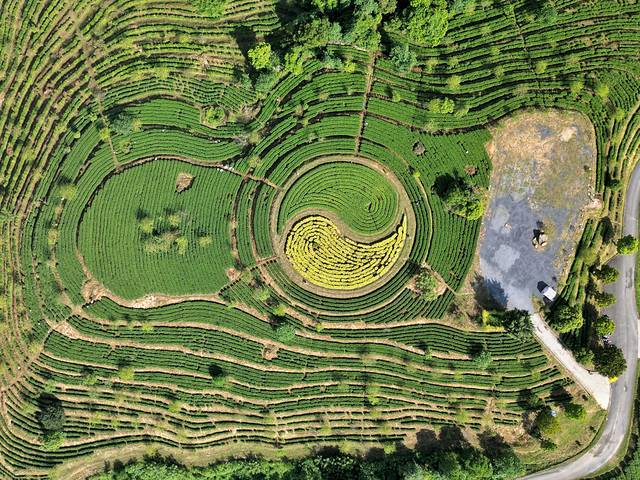 放飞无人机,用上帝的视角俯瞰整个茶园,会发现在茶园的C位竟有一个巨型的“太极八卦图”,真的有被震撼到,视觉冲击感拉满了!