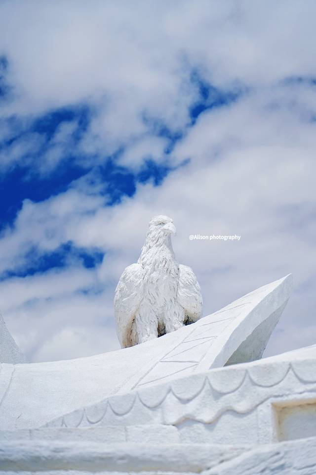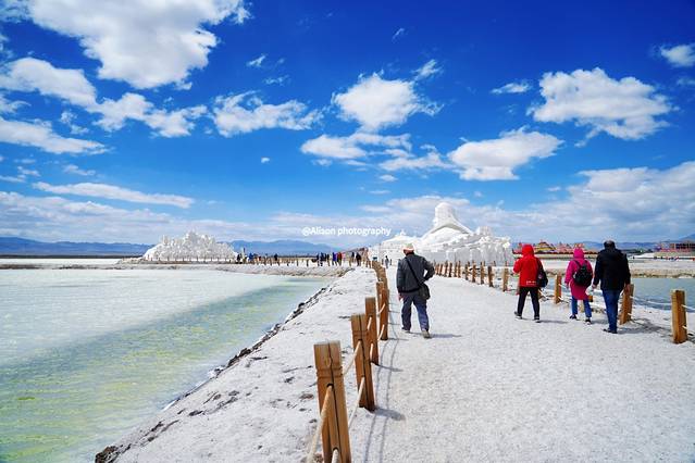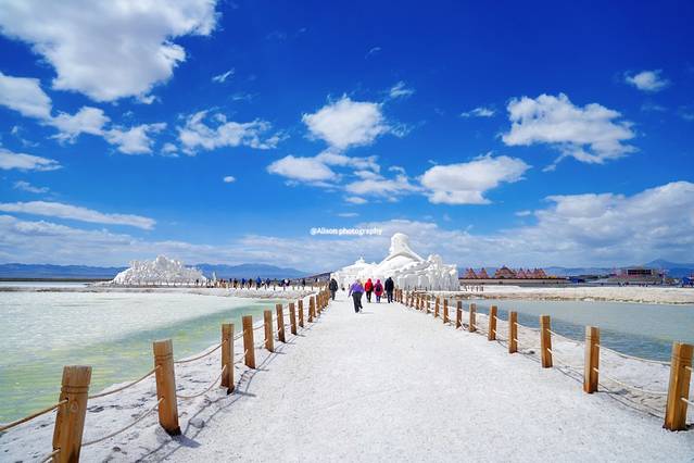 告别了阴雨天的青海湖,开车从青海湖出来,2个小时的车程,一路翻山越岭拨云见雾,终于遇见蓝天白云下的茶卡盐湖。茶卡第一面,遇见壮观的盐雕。造型惟妙惟肖,连老鹰身上的羽毛纹路都清晰可见。
