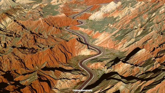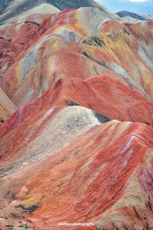 无人机远拍是一种色调,相机走近拍颜色又不一样,色彩都是自然形成,这就是七彩丹霞的神奇秀美之处。