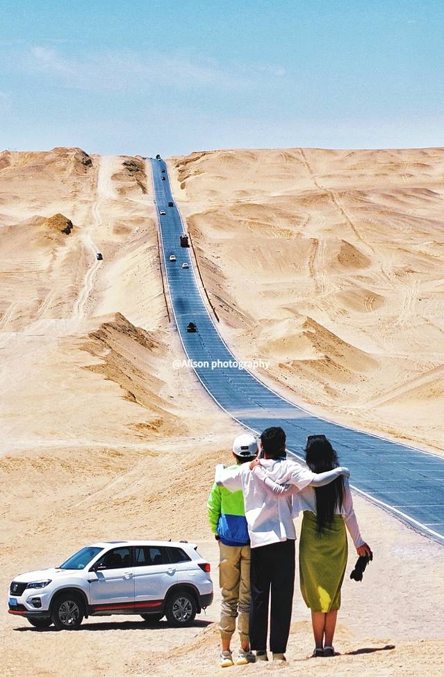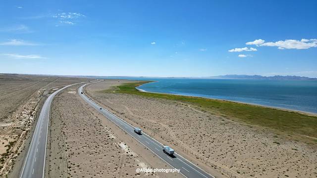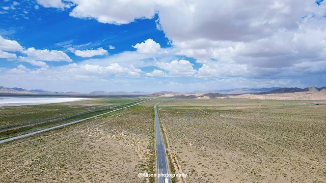 从茶卡盐湖景区出发,第五站目的地是乌素特水上雅丹,车程差不多6个半小时。在前往水上雅丹公园的路上,我们刚好经过了U型公路,于是停下来在这里留张合影。U型公路远远看过去就像一条长长的丝带直通天边。