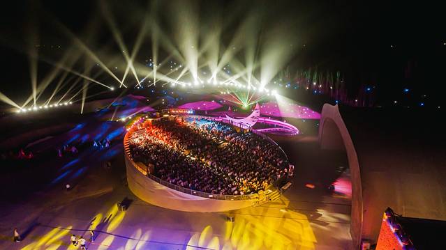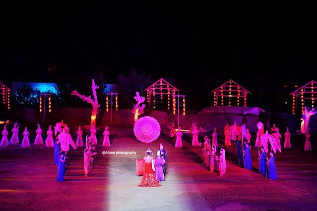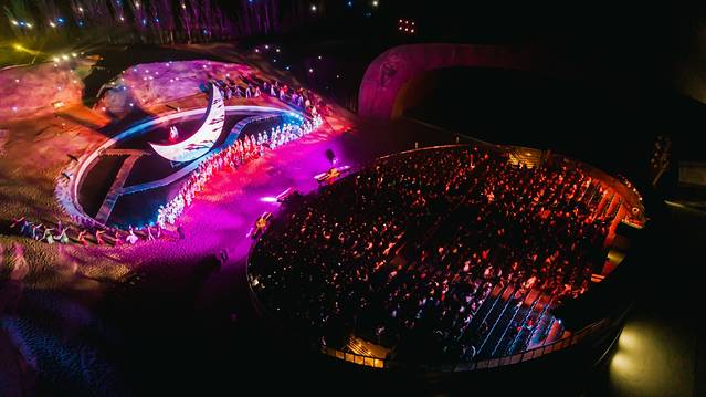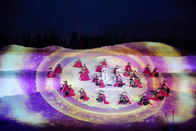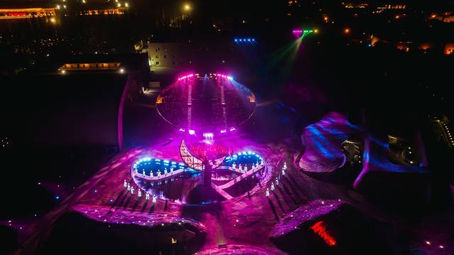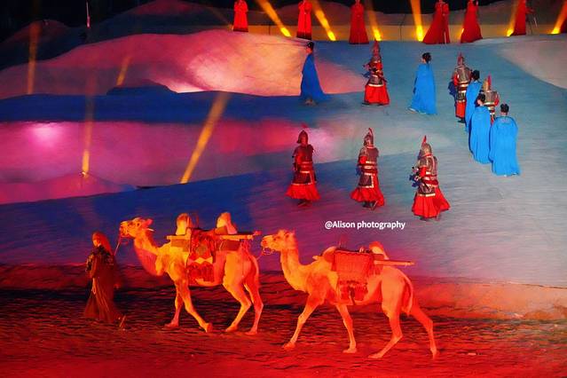 夜幕降临一场《敦煌盛典》正在上演,天地皆为舞台,风沙皆可添彩。360度可旋转的舞台、完美的灯光声效结合演员精湛的演技,将观众瞬间拉回到几千年以前的敦煌。