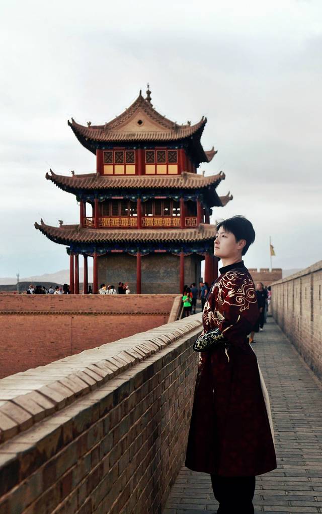 着古装行走于城楼之上,一种家国情怀油然而生。